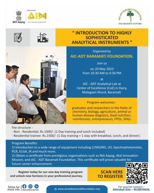 Join us for an exciting event on May 15th, 2023 from 10:30 AM to 4:30 PM at AIC – ADT Analytical Lab, Malegaon Khurd, Baramati.