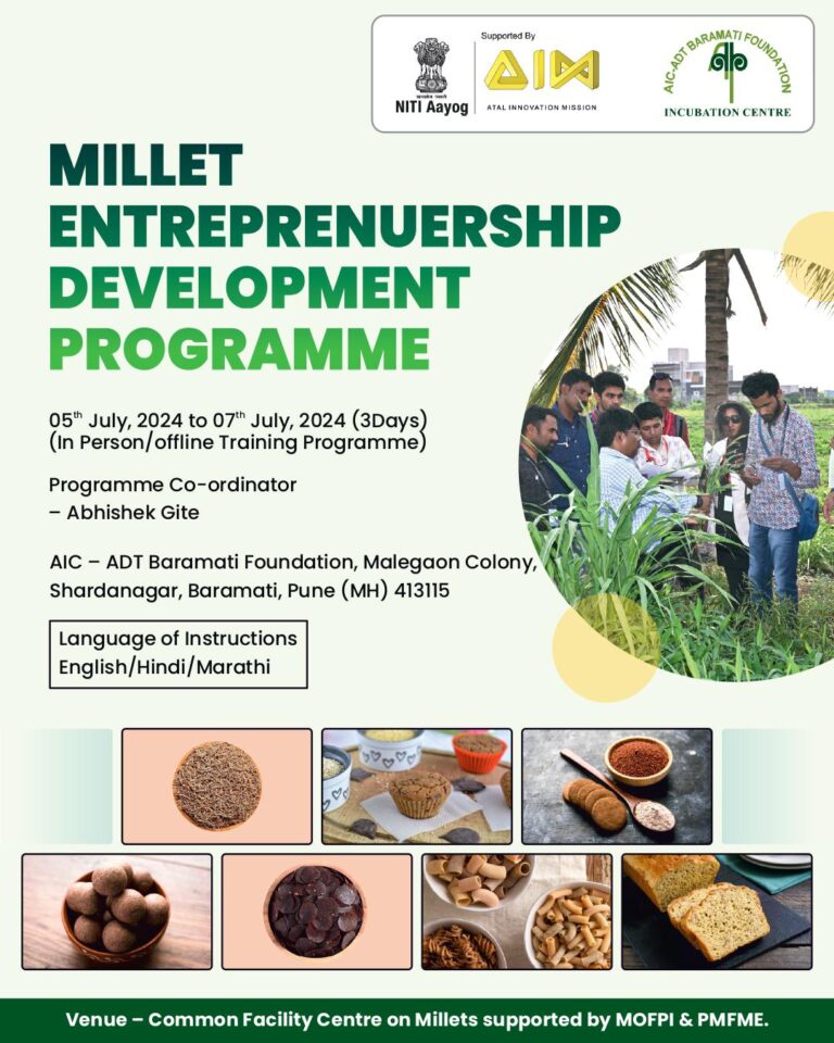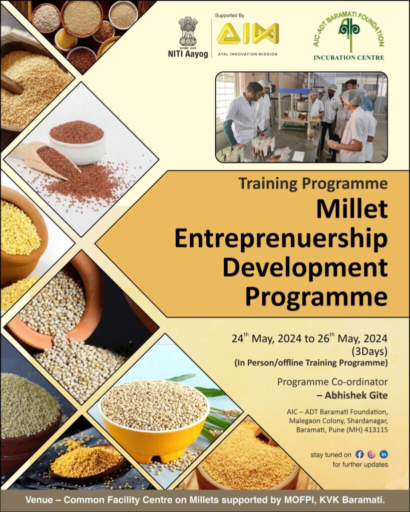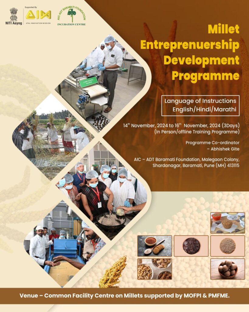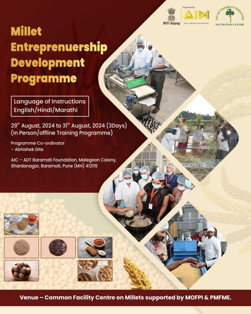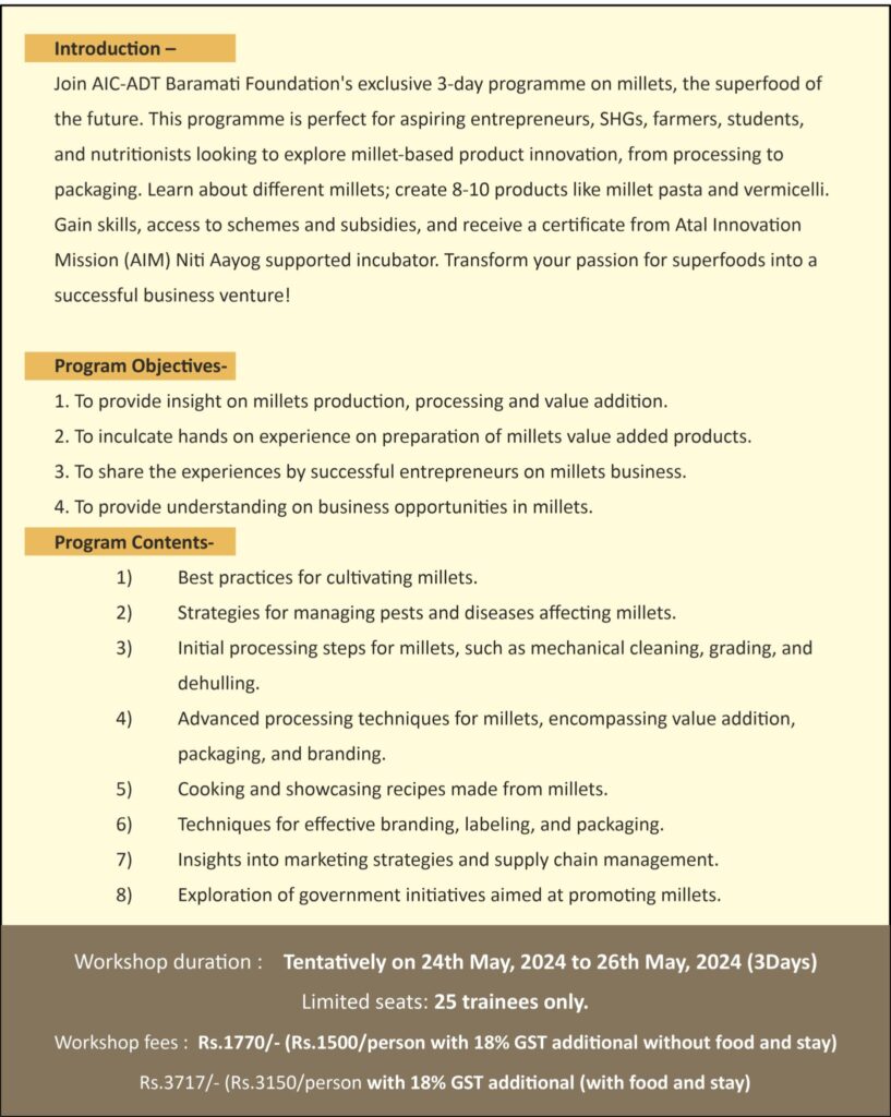 We are announce the second batch of training on “Millet Entrepreneurship Development Programme,” a 3-day intensive hands-on session